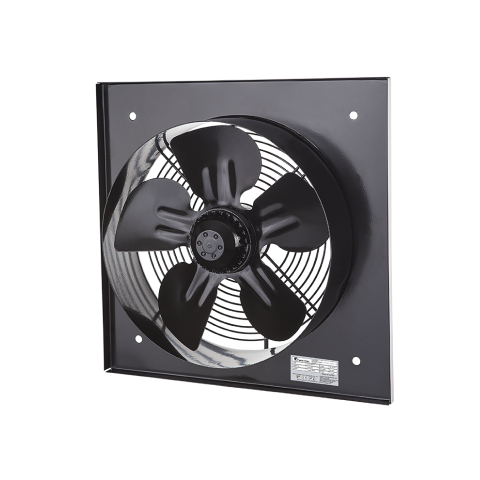 • Axial fan with square wall plate made of powder-coated sheet steel.