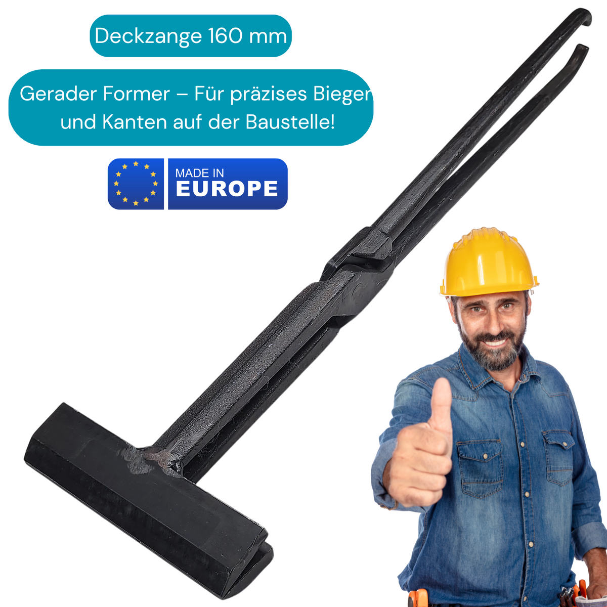 Diese hochwertige Deckzange wurde speziell für das Biegen und Kanten von bereits verlegten Blechscharen auf der Baustelle entwickelt. Dank ihrer geraden Form ermöglicht sie präzises Arbeiten beim Biegen von Blechen in unterschiedlichen Anwendungen.