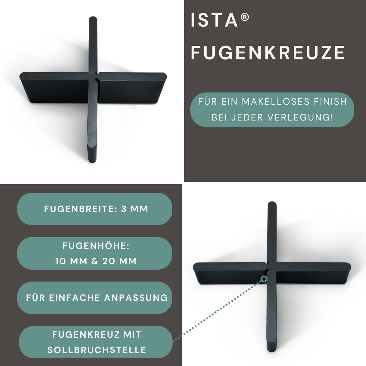 ISTA® Fugenkreuze 3mm, Höhe 10mm oder 20mm – Perfekt für Terrassenplatten