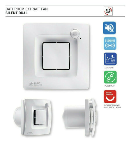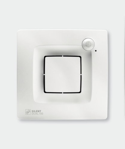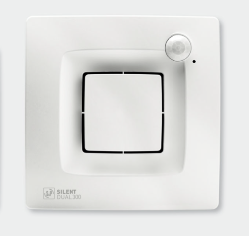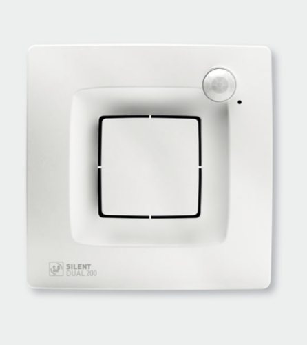 Silent Dual arbeitet automatisch, wenn es Bewegungen erkennt oder die Luftfeuchtigkeit steigt, und aktiviert einen voreingestellten Modus, um den niedrigsten Energieverbrauch und den niedrigsten Geräuschpegel zu erzielen.