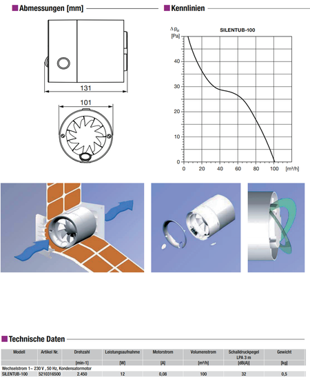 Rohreinschub-Ventilator SILENTUB-100