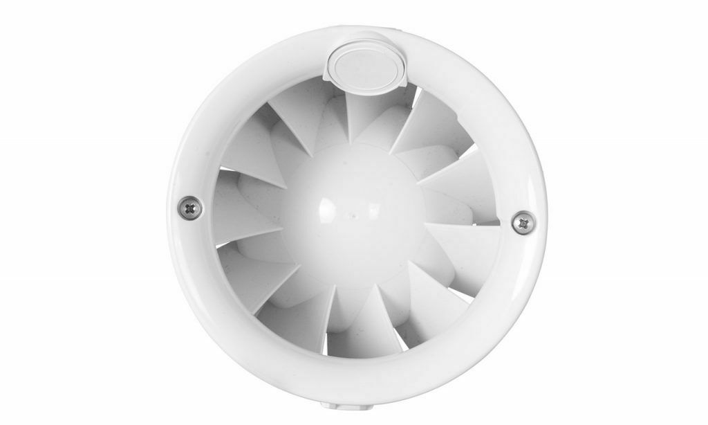 -Gehäuse und Flügel aus schlagfestem Kunststoff, weiß -Rückluftsperre, druckseitig -Zum Einschub in Rohre NW 100